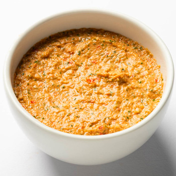 Pomodoro fresco, mandorle, basilico, pecorino stagionato, aglio e olio EVO. Quantità: 2 Persone Allergeni: 7, 8